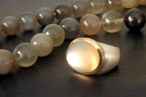 mit Bayonettschließe 750/ MondsteinCabochon-Ring Silber 925/ Gold 750.